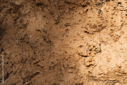 dry, textured soil with uneven surface, small cracks, and scattered organic particles, natural earthy background, agriculture, environment, geology, growth, sustainability, drought, land development