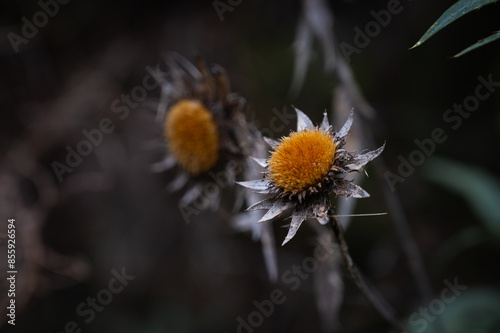 dry thistle close up in the forest