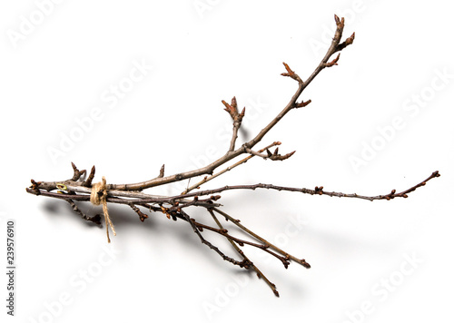 Dry tree branch on a white background isolation top view