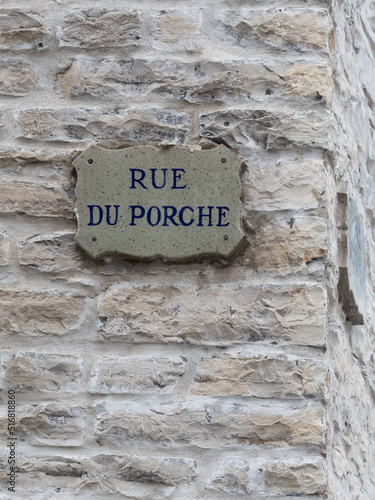 Du Porche street sign on 18th century patrimonial building, Petit-Champlain area, Quebec City, Quebec, Canada