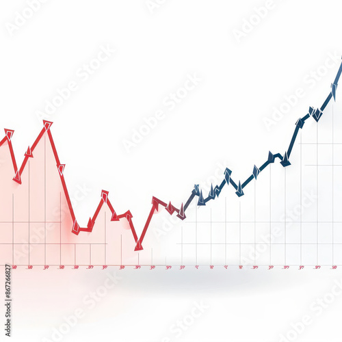 Dual-color financial graph showcasing rise and fall trends in red and blue on a white background. Business data concept.