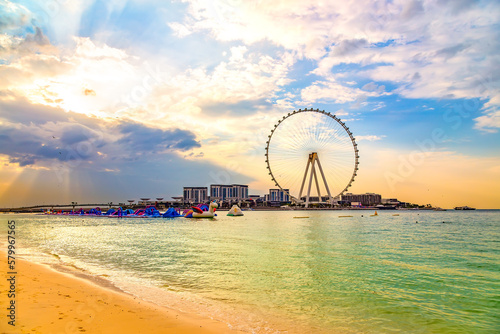 dubai beach clouds the edge of the sea clear water of the Ferris wheel resort