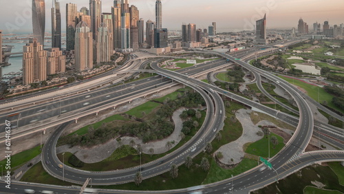 Dubai Marina highway intersection spaghetti junction night to day timelapse