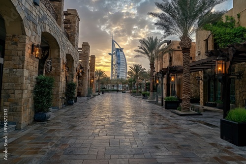 Dubai-United Arab Emirates-12-28-2018-View of Burj Al Arab in Souk Madinat Jumeirah Dubai, generative ai