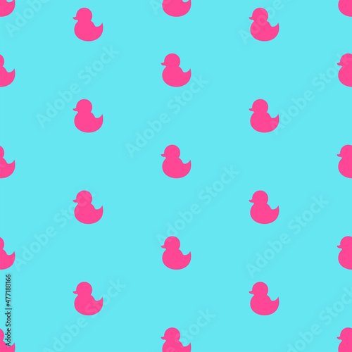 Ducks. Vector seamless pattern in pop art. Cute pink bird silhouettes on blue backdrop
