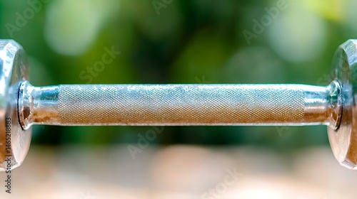 Dumbbell Close Up on Green Blurred Background for Fitness and Exercise