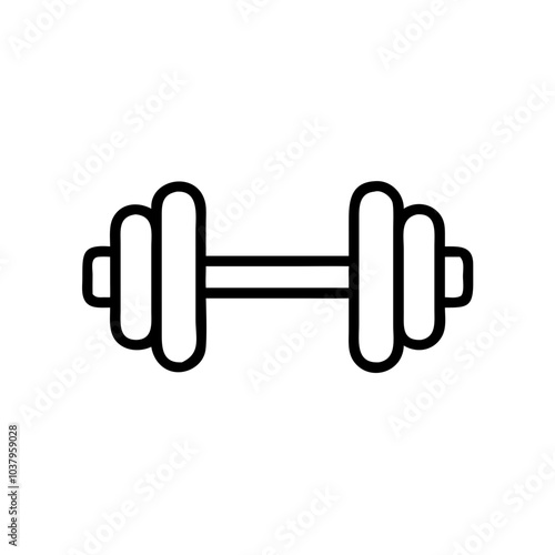 Dumbbell icon representing weightlifting and strength training, black outline, modern design