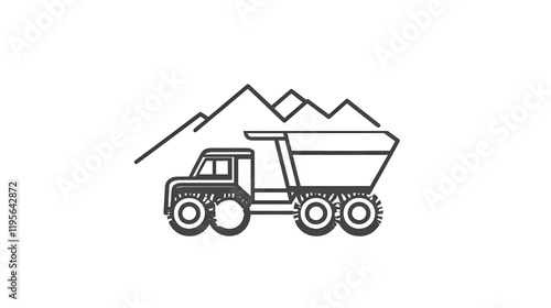 Dump truck illustration, industrial mood, mountainous background, line art