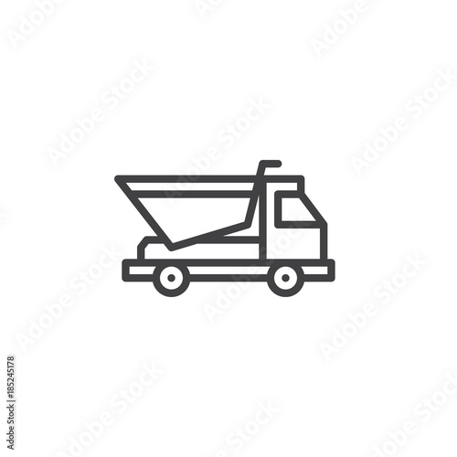 Dump truck line icon, outline vector sign, linear style pictogram isolated on white. Dumper transportation symbol, logo illustration. Editable stroke