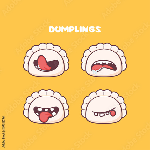dumplings cartoon. asian food vector illustration. with different mouth expressions
