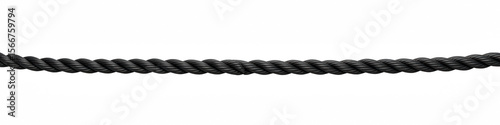 Durable black rope with twisted fibers, ideal for various applications such as boating, camping, and construction. Strong and reliable for heavy