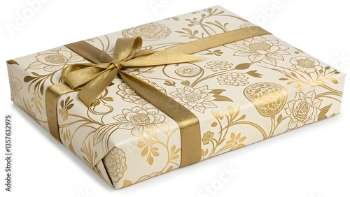 Durable gold ribbon wrapping paper with floral patterns and elegant designs for luxury gift boxes and presents , elegance, packaging
