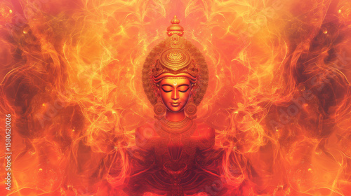 Durga idol emerging from abstract fire mandala