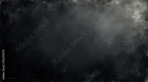 Dust And Scratches Design. Aged Photo Editor Layer. Black Grunge Abstract Background. Copy Space