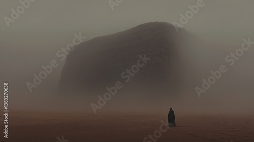 Dusty landscape, shrouded figure