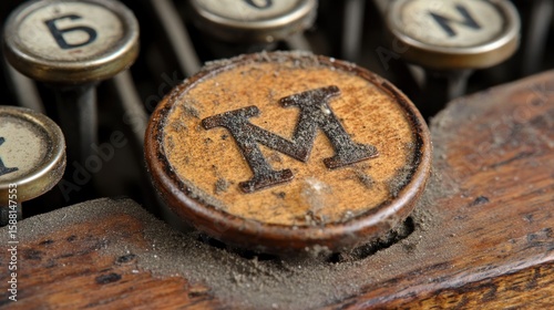 Dusty Vintage Typewriter Key 'M' Closeup