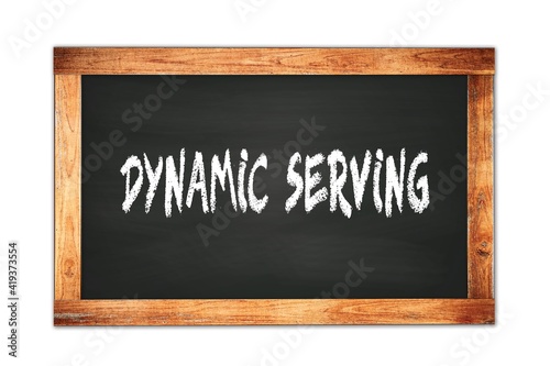 DYNAMIC SERVING text written on wooden frame school blackboard.