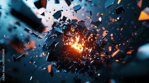 Dynamic 3D illustration of an abstract geometric background, featuring explosive power and a visually striking crushing surface