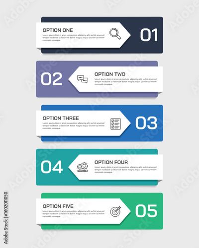 Dynamic 5 Steps Vertical Arrow Business Process Infographic for Strategic Presentation. Illustration Vector.