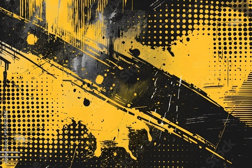 Dynamic Abstract Art with Bold Yellow and Black Patterns