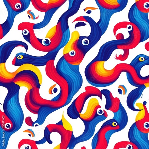 Dynamic abstract artwork colorful fluid shapes in a vibrant contemporary art gallery