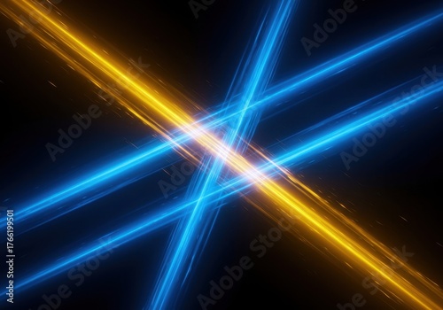 Dynamic abstract background with bright blue and golden yellow light rays crossing in a futuristic digital space ,futuristic ,trace ,yellow