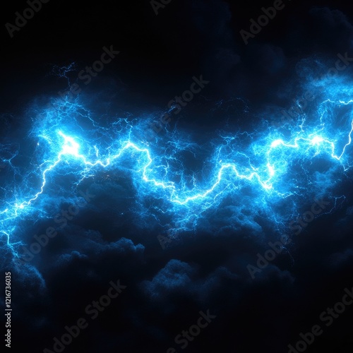 Dynamic Abstract Blue Lightning Bolts Against Dark Clouds