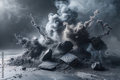 Dynamic Abstract Slate Dust Explosion with Textured Smoke Effects