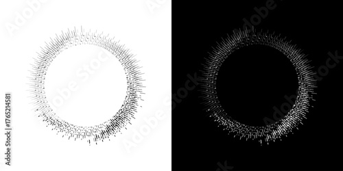 Dynamic abstract spiral sound wave rhythm lines. Circular spiral sound wave rhythm of lines. Circular futuristic abstract lines, black and white background.