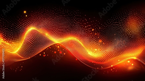 Dynamic Abstract Wave of Glowing Dots in Fiery Colors Against Dark Background