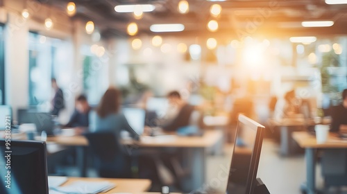 Dynamic and Bustling Office Environment with Focused Employees at Work