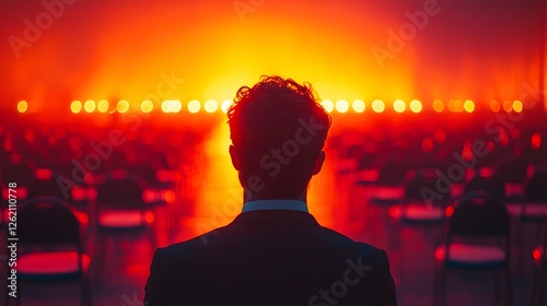 Dynamic and Precise Event Planner Arranging Glowing Chairs in Surreal Venue Lighting