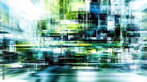 Dynamic Architectural Abstraction: A digitally rendered architectural cityscape explodes with vibrant colors and motion.