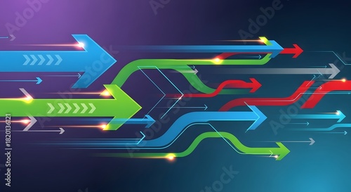 Dynamic Arrow Flow and Future Direction perfect for website banner, technology presentation, business report, marketing material, data visualization,
