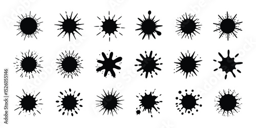 Dynamic Black Ink Splatters A Diverse Collection of Grunge and Artistic Burst Shapes
