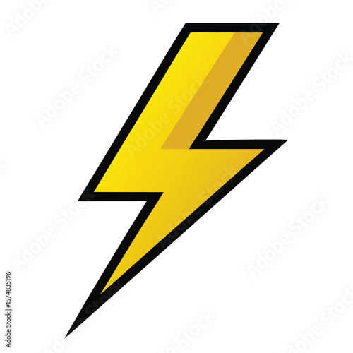 Dynamic black lightning bolt silhouette striking powerfully isolated on white background