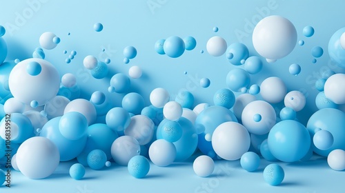 Dynamic blue and white spheres floating in minimalist abstract space. Concept of blue Monday
