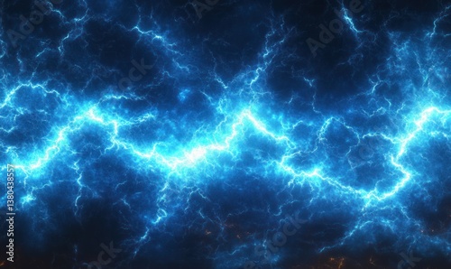 Dynamic Blue Electric Lightning Abstract Fractal Art