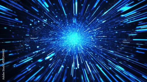 Dynamic Blue Light Burst with Radiating Streaks Creating a Futuristic and Energetic Abstract Background