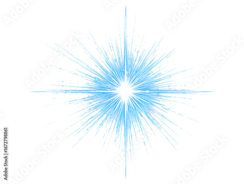 Dynamic blue light rays emanating from a bright starburst on abstract background
