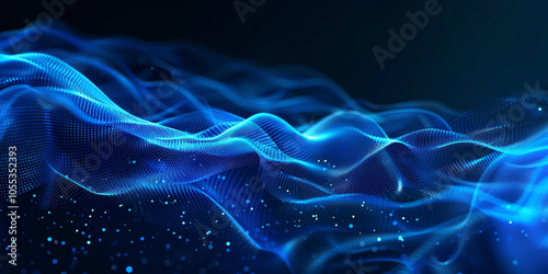 Dynamic Blue Waves Flowing Gracefully on a Deep Black Background