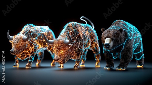 Dynamic Bull and Bear Market Representation Digital Art Financial Concept Futuristic Environment Close-Up Viewpoint Crypto Trends