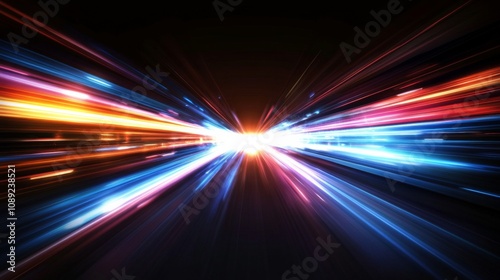 Dynamic Burst of Colorful Light Rays on Black Background, Abstract Digital Art with Energy and Movement