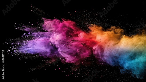 Dynamic burst of rainbow powder dust, showcasing a spectrum of colors in a dramatic explosion.