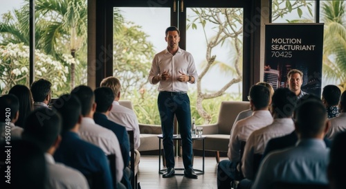 Dynamic Business Presentation Inspiring Audience During Corporate Event Outdoors