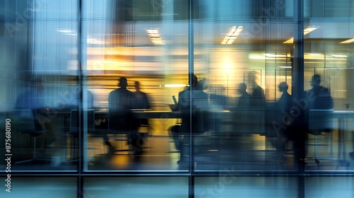 Dynamic Business Team Meeting in Modern Office with Blurred Glass Walls
