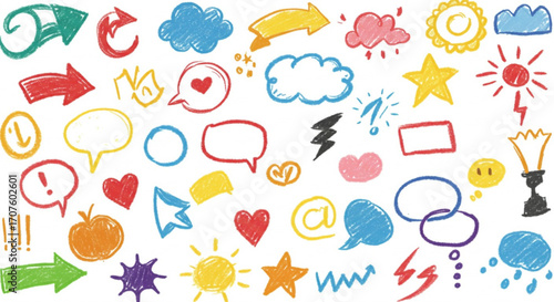 Dynamic collection of colorful hand-drawn icons for creative projects and presentations