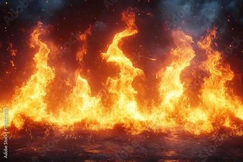 dynamic collection of photorealistic flame elements, ranging from small flickers to roaring infernos, detailed fire photography with smoke effects