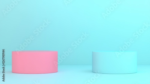 Dynamic color contrast pink and blue circles minimalistic studio 3d render soft lighting modern design concept
