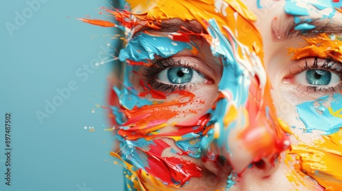 Dynamic colorful particles burst against a blue abstract backdrop, creating a stimulating visual effect that conveys energy, creativity, and the vibrant beauty of spontaneous moments.